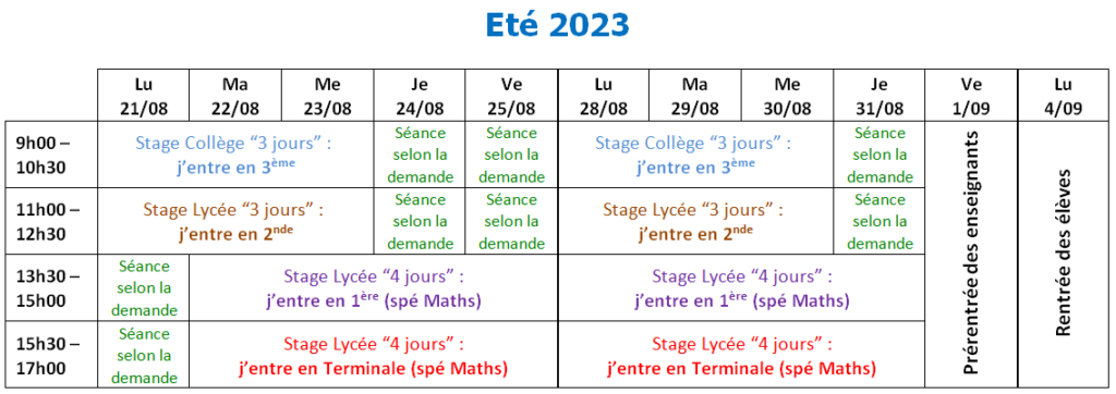 Il reste des créneaux pour un autre thème ou un autre niveau.